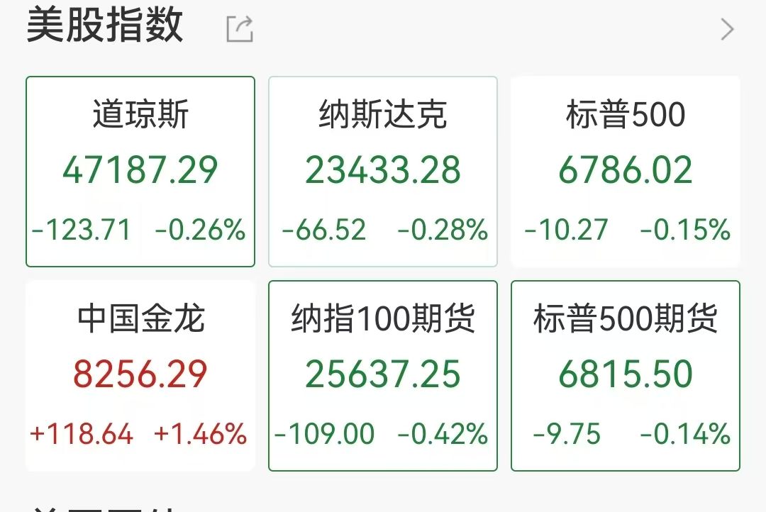 美东时间周四,美股三大指数集体低开,截至22:50,道指跌0.26%,标普500指数跌0.15%,纳指跌0.28%。