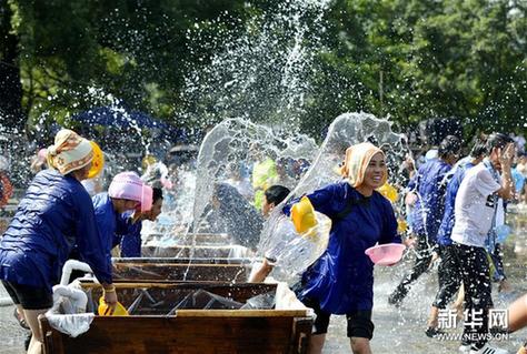 8月24日,贵州省榕江县三宝侗寨举行“扁水”狂欢节活动。“扁水”是当地方言,为“戏水、泼水”之意。“扁水”狂欢节源于侗族群众互访交流的习俗,人们在社交往来中互相戏水、泼水狂欢,久而久之形成“扁水”狂欢节。