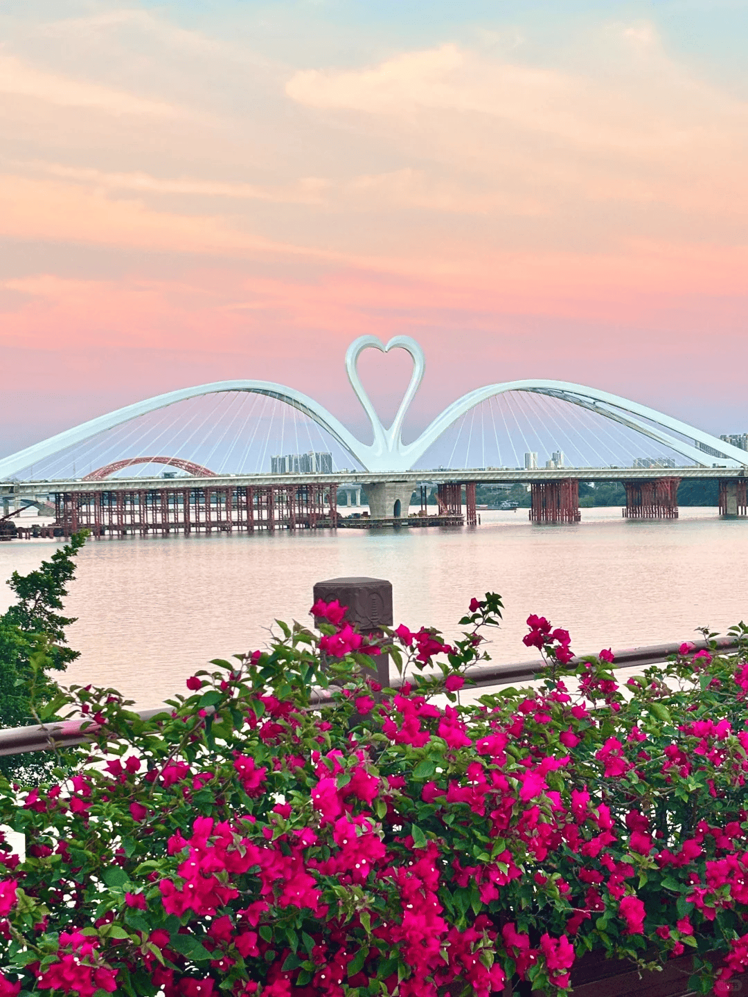 这是很多惠州人心中的“惠州最美大桥”“恋爱脑网红桥”。大桥以东江之“水”、惠州之“鹅”为主要元素进行演绎设计,外观为两只白色天鹅相向之吻,规划形态具有本地特色,艺术造型蕴含“天鹅引颈高歌”的美好寓意,展示惠州的“鹅城”特征。桥塔新颖富有韵律,是一座造型美学与结构力学结合的艺术桥梁。