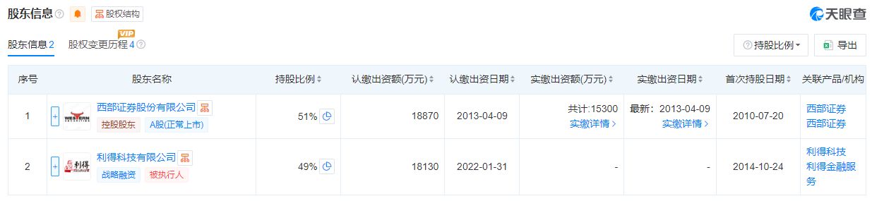 由于立案时间是今年的11月6日,外界有声音质疑该公司被执行的原因,或与年内公司股东之一质押股权的相关情况有关。据基金公司官网信息,公司注册资本3.7亿元,西部证券持股51%,利得科技持股49%。